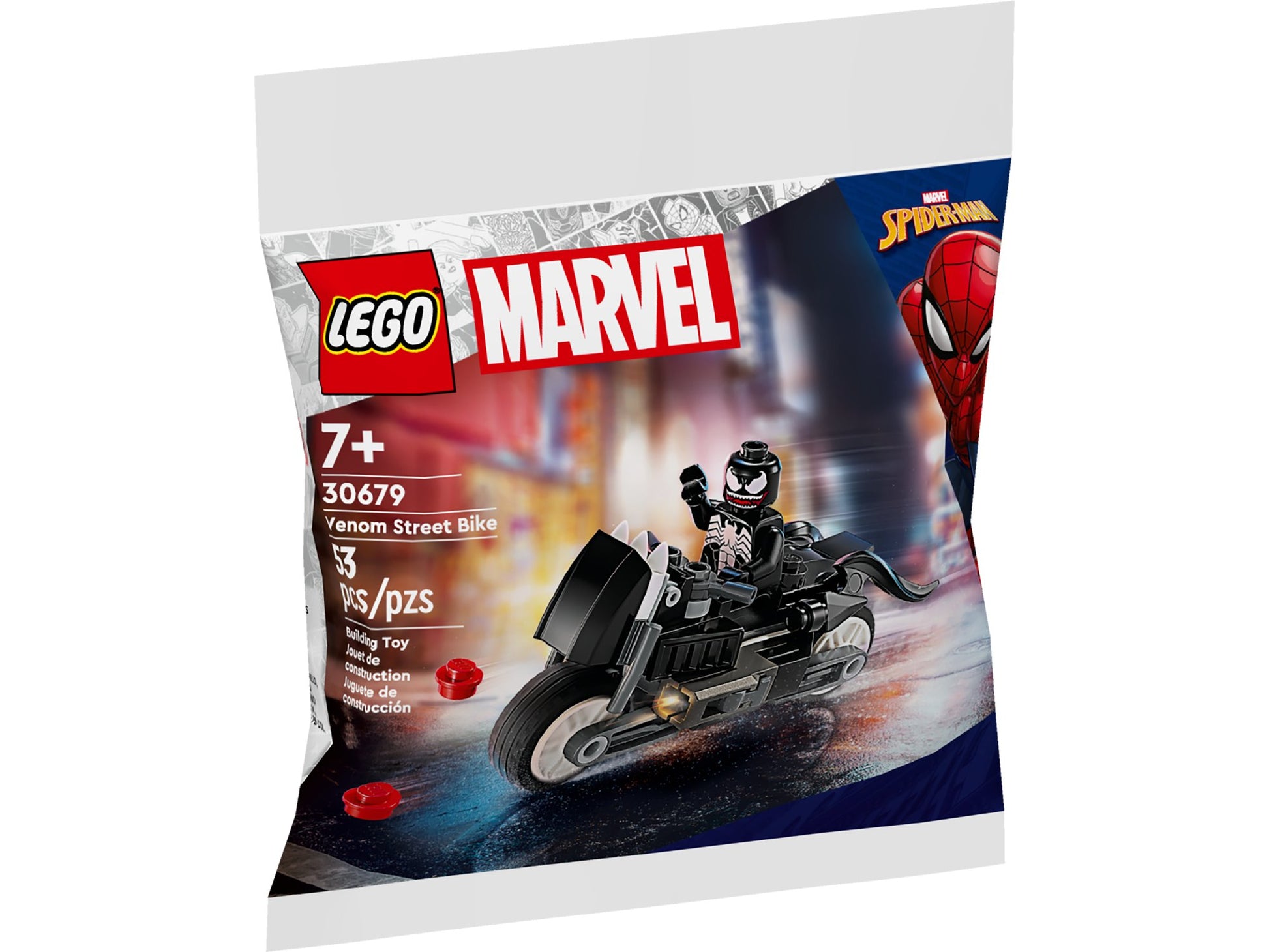 Die Minifigur Venom und ein baubares 10 cm langes Spielzeugmotorrad laden zum Spielen ein. Das kraftstrotzende Bike verfügt über rollende Räder und 2 Shooter.