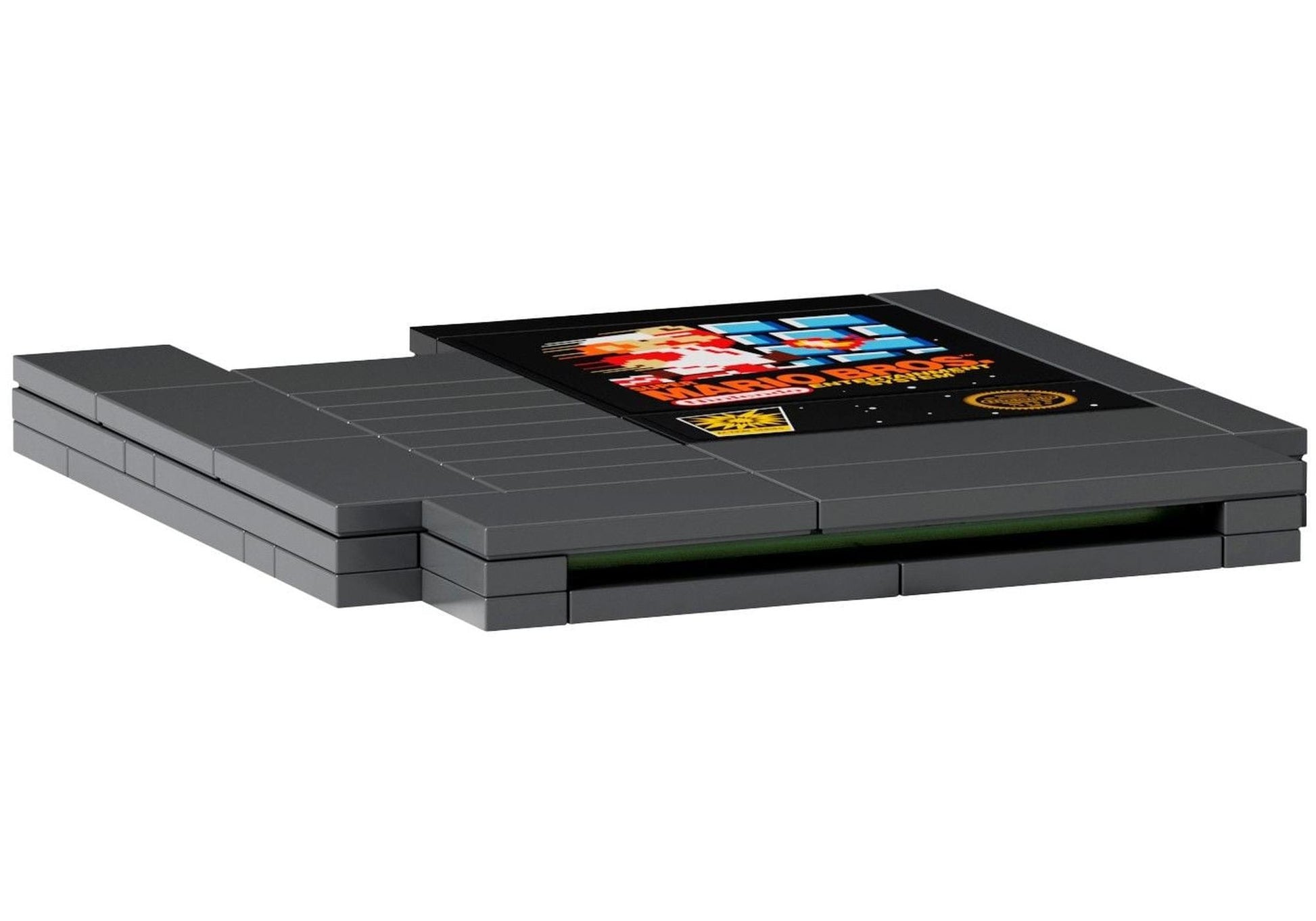 Das NES aus LEGO® Steinen verfügt über einen aufklappbaren Schacht mit Verriegelungsfunktion für das Steckmodul und einen Controller mit Anschlusskabel und Stecker. Das Set enthält auch ein altmodisches TV-Gerät mit einer 8-Bit-Mario-Figur auf dem Side-Scrolling-Bildschirm. Durch den Einsatz des in LEGO® Super Mario™ Starterset (71360) enthaltenen Funktionssteins kann die LEGO® Mario™ Figur auf die Gegner, Hindernisse und Power-Ups auf dem Bildschirm reagieren.