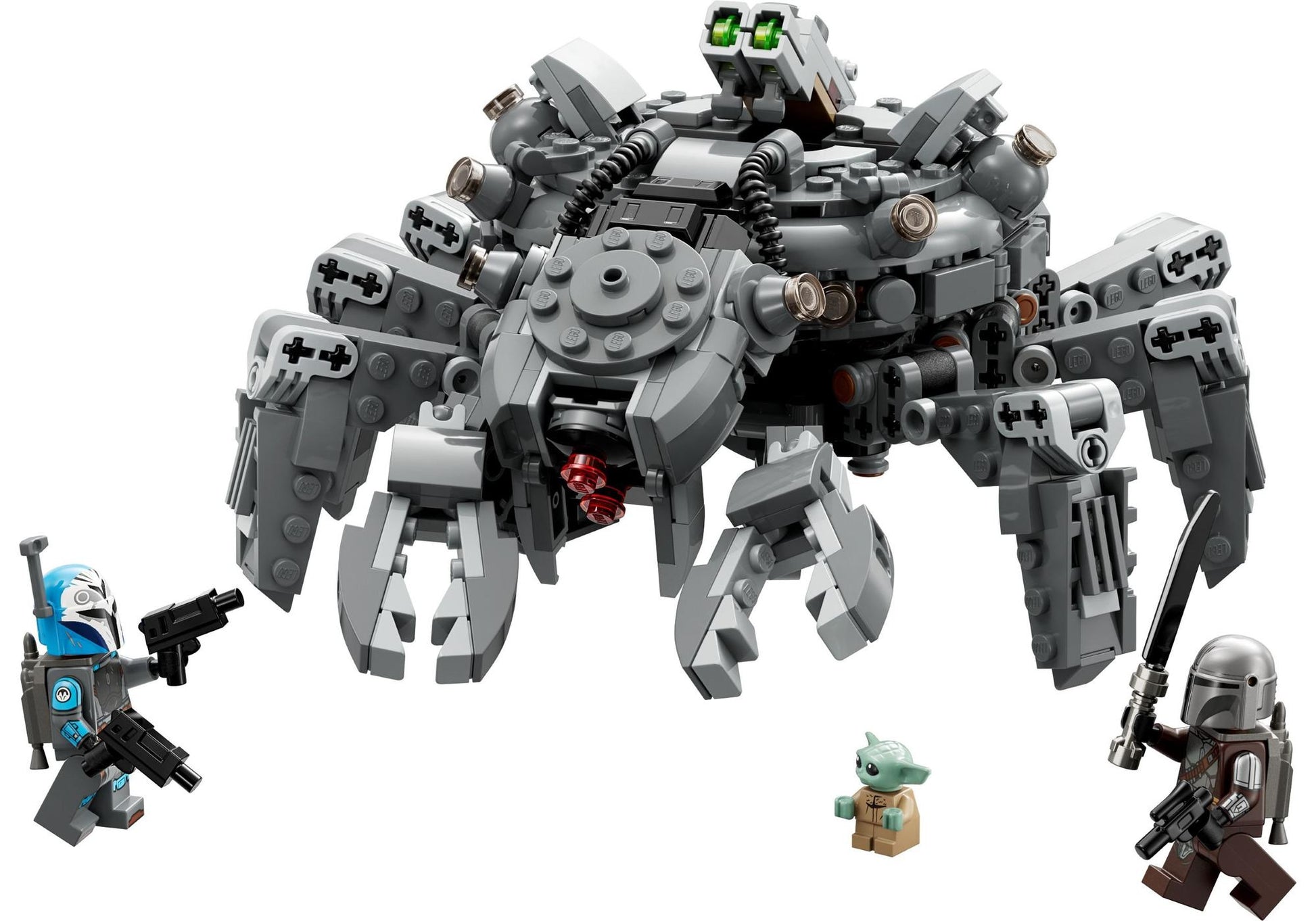 Der Spinnenpanzer (75361) aus LEGO® Steinen ist genau das richtige Spielzeug, um Kinder ab 9 Jahren spannende Duelle aus der 3. Staffel von Star Wars: The Mandalorian nachspielen zu lassen. Der Spinnenpanzer hat flexible Beine, Greifklauen, ein aufklappbares Cockpit für eine LEGO Minifigur und eine hochschwenkbare Luke mit 2 Shootern. Außerdem beinhaltet das Set 3 beliebte Star Wars™ Figuren: Den Mandalorianer mit Dunkelschwert, Blaster-Pistole und Raketenrucksack, Bo-Katan Kryze mit 2 Blastern und Raketenrucksack und die LEGO Figur Grogu, den die Fans liebevoll „Baby Yoda“ nennen.