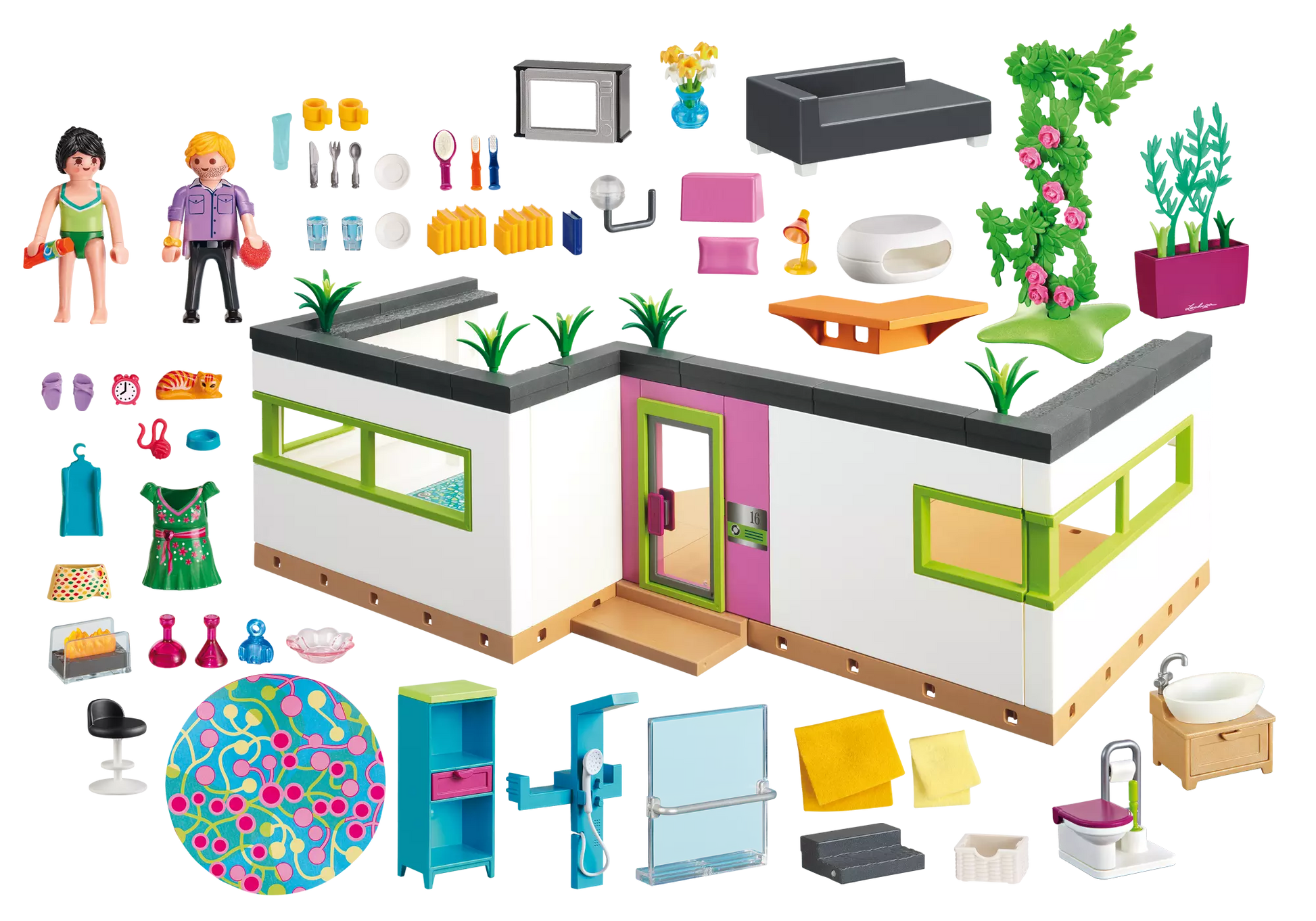 Entdecken Sie den vielseitigen Playmobil Gästebungalow, ausgestattet mit einer Mini-Küche, einem Wohnzimmer und einem Badezimmer mit Dusche. Die Maße des Gebäudes betragen 50 x 32 x 15 cm (LxTxH). Dieses eigenständige Gebäude bietet die Möglichkeit, es mit dem Wohnhaus zu einer geräumigen Villa zu kombinieren, wobei einige Bauteile übrig bleiben! Ein besonderes Merkmal ist der Kleiderbügel, der so konzipiert wurde, dass alle Arten von Kleidungsstücken, einschließlich trägerloser Kleider und Röcke, sicher befestigt werden können. Geeignet für kreative Köpfe ab einem bestimmten Alter. Erweitern Sie Ihre Playmobil-Welt mit diesem Gästebungalow und lassen Sie Ihrer Fantasie freien Lauf!