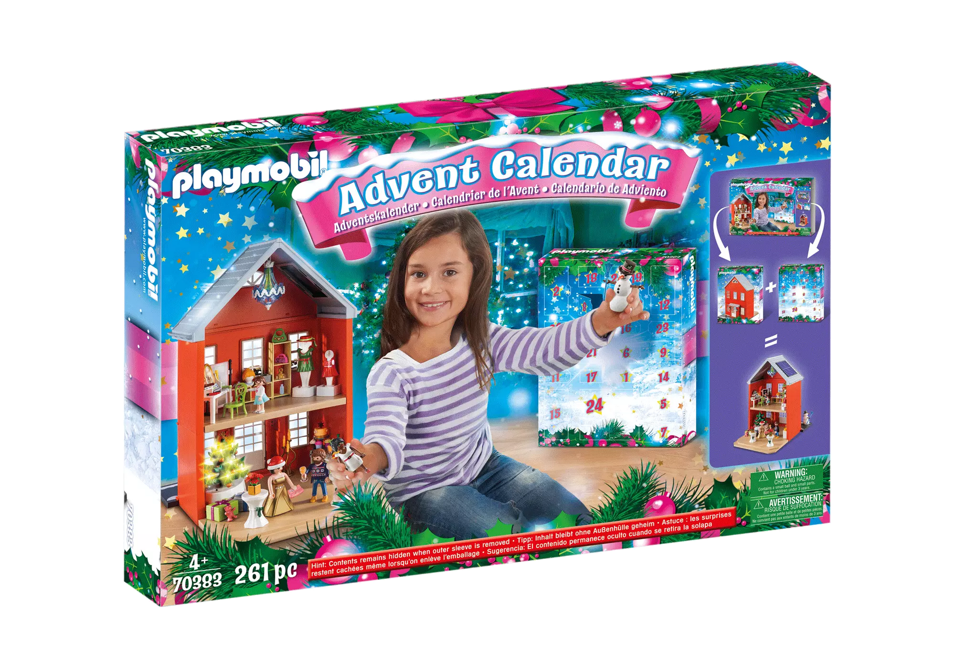 Der PLAYMOBIL Adventskalender "Weihnachten im Stadthaus" bietet 24 Tage voller kleiner Weihnachtsfreuden. Dieser 162-teilige Kalender enthält 4 Figuren, einen Weihnachtsbaum mit Leuchtfunktion und zahlreiche Accessoires für die perfekte Weihnachtsstimmung. Von Geschenken über Möbel bis hin zu Leckereien, dieses Set verwandelt sich bis Heiligabend in ein festlich geschmücktes Weihnachtshaus. Das Obergeschoss beherbergt ein Ankleidezimmer mit allem, was man für die bevorstehenden Feierlichkeiten benötigt. Das 261-teilige Spielzeugset enthält zudem ein detailliertes zweistöckiges Wohnhaus, einen Schneemann und weitere Extras. Dank mitgelieferter Klebeetiketten kann das Haus weihnachtlich dekoriert und nach den Feiertagen wieder neutral gestaltet werden, was das Spielen das ganze Jahr über ermöglicht. Geeignet für kreative Kinder ab 4 Jahren, bietet dieser Adventskalender stundenlangen Spielspaß und fördert die Fantasie. Mit dem großen Adventskalender "Weihnachten im Stadthaus" wird das Warten auf Weihnachten zu einem zauberhaften Erlebnis, das Freude und Vorfreude auf die Feiertage vermittelt.