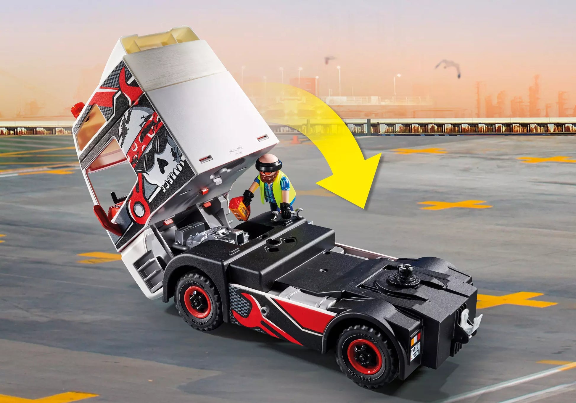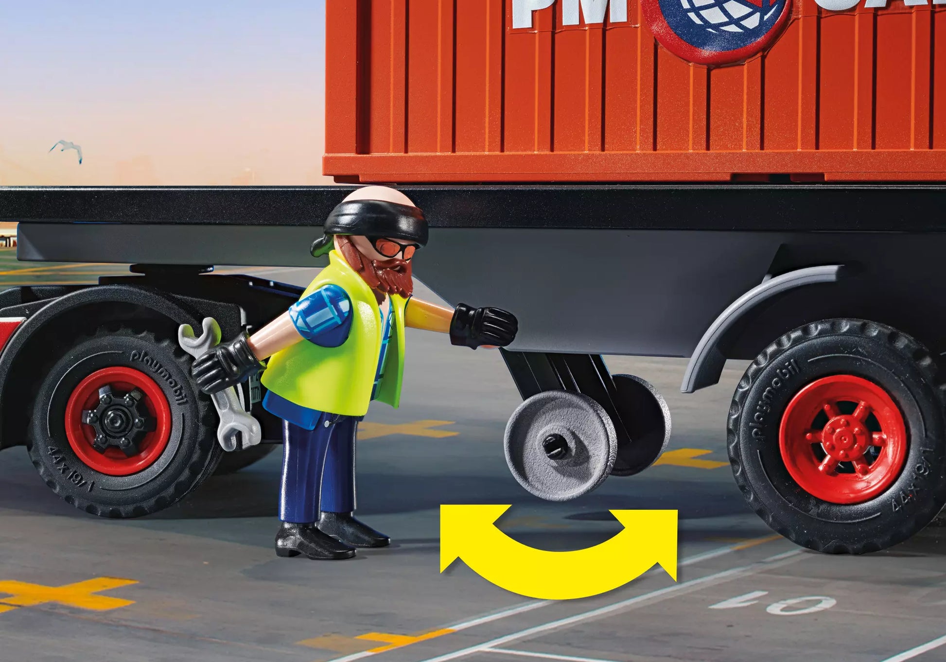 Erleben Sie spannenden Spielspaß mit dem RC-fähigen PLAYMOBIL Lastkraftwagen, der speziell für Logistikfans entwickelt wurde. Dieser robuste LKW mit abnehmbarem Dach und einem separat abstellbaren Anhänger eignet sich perfekt für Frachtwege an Land. Die Fernsteuerung ermöglicht es, den LKW mühelos zu steuern, während das coole Totenkopfmotiv auf der Fahrerkabine ihm einen einzigartigen Look verleiht. Wenn das nächste Containerschiff im Hafen anlegt, ist dieser Lastkraftwagen bereit, die tonnenschweren Container zu transportieren. Das 60-teilige Set enthält eine PLAYMOBIL-Figur, Zubehör wie Funkgerät, Werkzeugkiste, Ölflasche und vieles mehr. Dank seiner Erweiterbarkeit mit der separat erhältlichen RC-Steuerung (Artikelnummer 71397) bietet dieser Lastkraftwagen endlose Spielmöglichkeiten. Geeignet für Kinder ab einem bestimmten Alter. Bringen Sie mit diesem detailreichen Spielset die Welt der Logistik zum Leben und lassen Sie Fantasie und Kreativität freien Lauf.