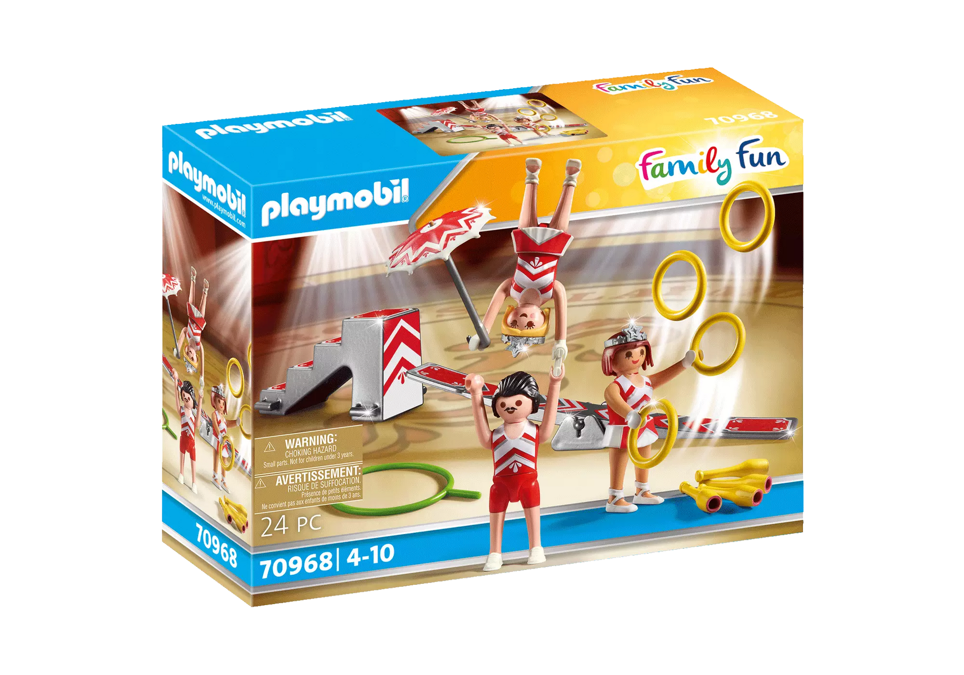 Erwecken Sie den Zirkuszauber zu Hause mit dieser talentierten Artistengruppe von Playmobil! Bewundern Sie die faszinierenden Tricks der Zirkusstars, die mit Wippe, Schirm, Ringen, Reifen und Keulen das Publikum begeistern. Diese Spielzeug-Artisten jonglieren mühelos, balancieren auf der Wippe, springen durch Ringe und bringen Schwung in die Manege. Die detailreiche Set-Ausstattung umfasst drei PLAYMOBIL-Figuren sowie Zubehör für unzählige Zirkusvorstellungen im Kinderzimmer. Tauchen Sie ein in die Welt des Zirkus mit diesem liebevoll gestalteten Spielset, das Kinder jeden Alters begeistert und ihrer Fantasie Flügel verleiht. Von aufregenden Vorstellungen bis hin zu kreativem Spielspaß bietet diese Artistengruppe endlose Möglichkeiten für spannende Abenteuer. Bringen Sie die Magie des Zirkus nach Hause und lassen Sie Ihre kleinen Artisten die Bühne betreten, um ihre eigenen atemberaubenden Shows zu kreieren. Mit diesem Set können sie ihre motorischen Fähigkeiten stärken, ihre Vorstellungskraft entfalten und stolz auf ihre fantastischen Darbietungen sein. Willkommen im Zirkus des Spielens - bereit für den Vorhang, bereit für den Applaus!