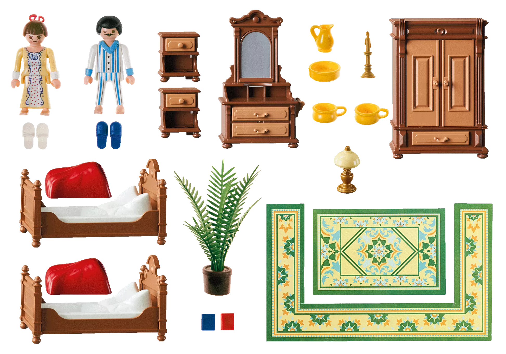 Mit zwei PLAYMOBIL-Figuren, Betten, Schrank, Spiegelkommode, Nachttischen, Büchern und anderen Extras bietet dieses Spielfiguren-Set endlose Möglichkeiten für kreativen Rollenspielspaß. Darüber hinaus kann das Schlafzimmer mit dem nostalgischen Puppenhaus (70890) kombiniert werden, um die Spielmöglichkeiten zu erweitern. Geeignet für Kinder jeden Alters, die ihre Fantasie entfalten und realistische Szenarien nachspielen möchten. Gönnen Sie Ihren PLAYMOBIL-Figuren ein gemütliches Zuhause und lassen Sie sie in diesem liebevoll gestalteten Schlafzimmer zur Ruhe kommen.