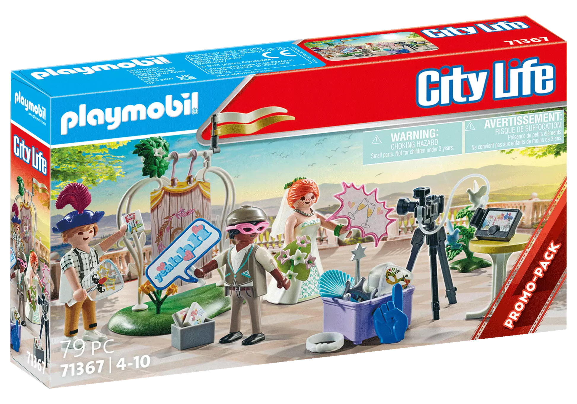 Feiern Sie die Liebe mit dem PLAYMOBIL Hochzeits-Fotobox-Set! Dieses einzigartige Spielzeug ermöglicht es Kindern ab 4 Jahren, unvergessliche Erinnerungsfotos zu gestalten. Mit lustigen Masken, abwechslungsreichen Accessoires und einer romantischen Fotoleinwand können das Brautpaar und die Gäste in die Welt der Fantasie eintauchen und verrückte Bilder kreieren. Das Set enthält drei PLAYMOBIL-Figuren, einen Fotoapparat mit Stativ, einen Monitor, einen Stehtisch und eine Vielzahl an Verkleidungsaccessoires. Die Fotos werden sicher in der Aufbewahrungsbox aufbewahrt, um die Erinnerungen an diesen besonderen Tag lebendig zu halten. Lassen Sie die Kinder kreativ werden und ihre eigenen Hochzeitsmomente mit diesem unterhaltsamen Spielset verewigen!